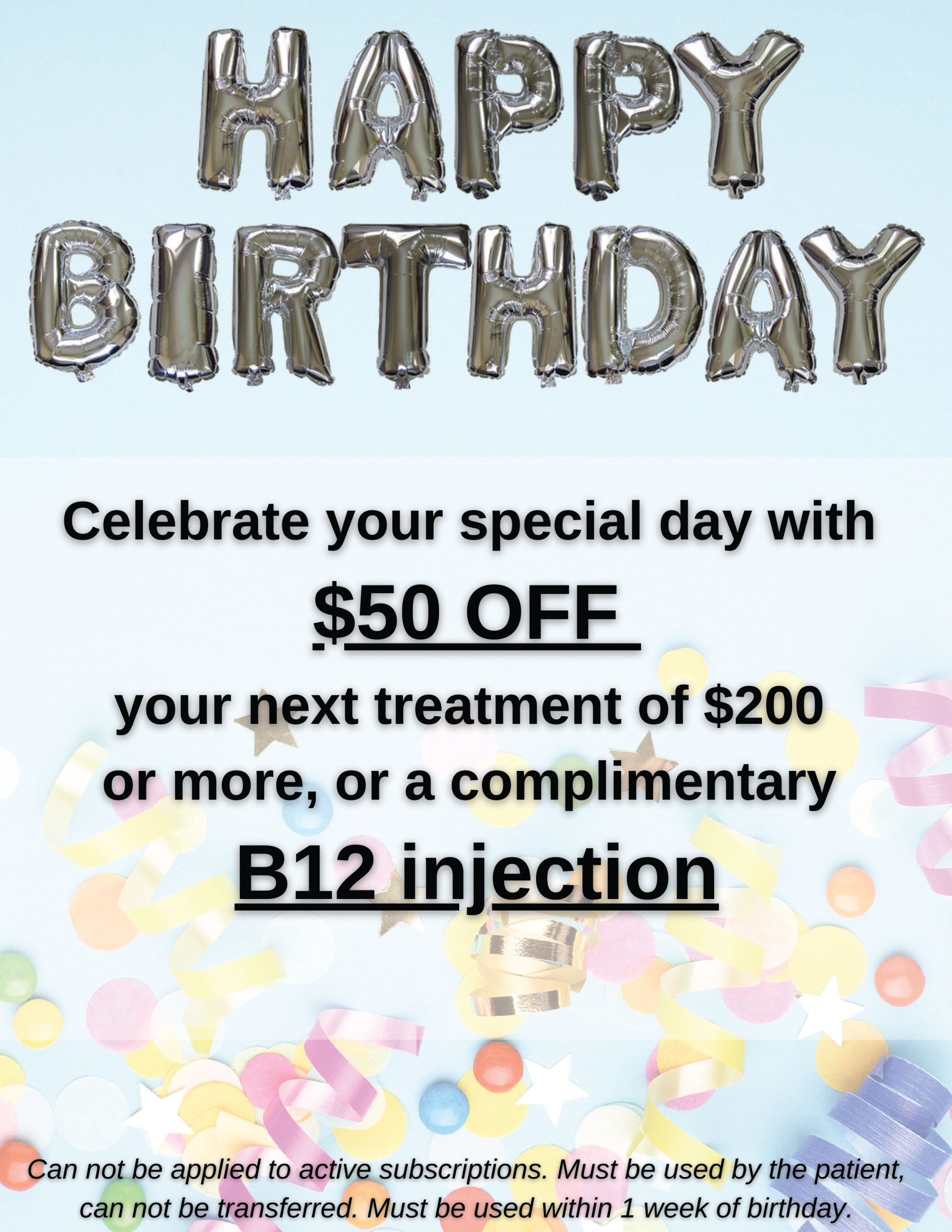 HAPPY BIRTHDAY - $50 OFF